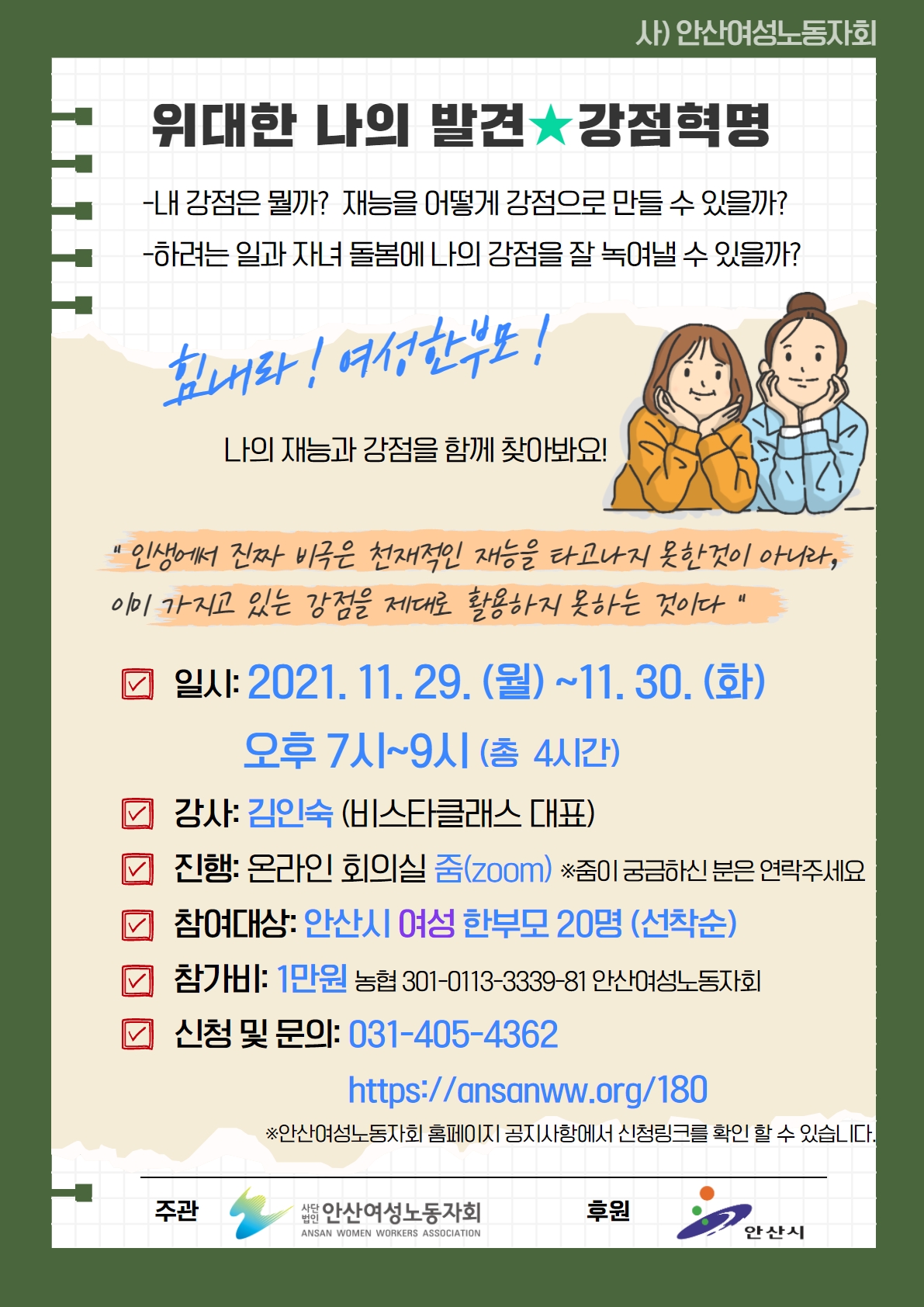 지역사회의 리더로서 역량을 펼칠 여성 한부모들의 많은 관심 바랍니다.