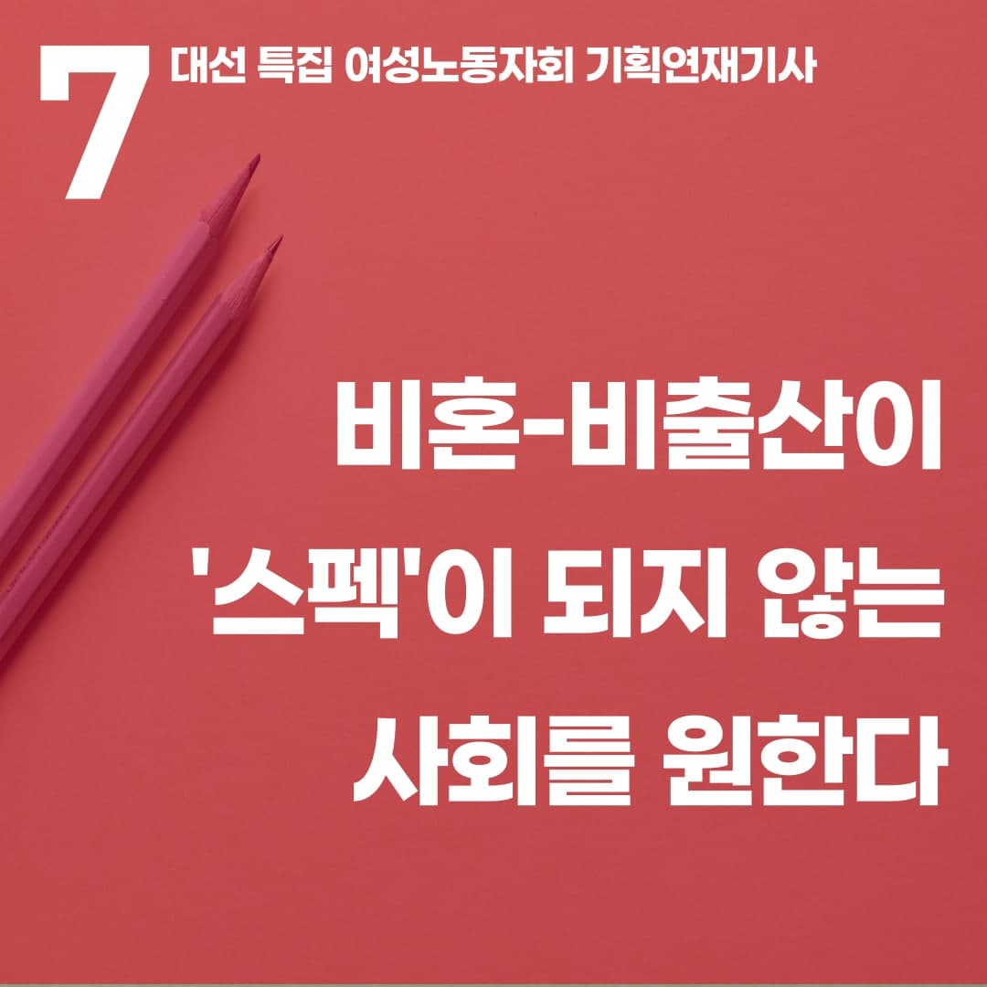 [성평등노동 없는 대선, 여성노동자가 말한다⑦] 비혼-비출산이 '스펙'이 되지 않는 사회를 원한다