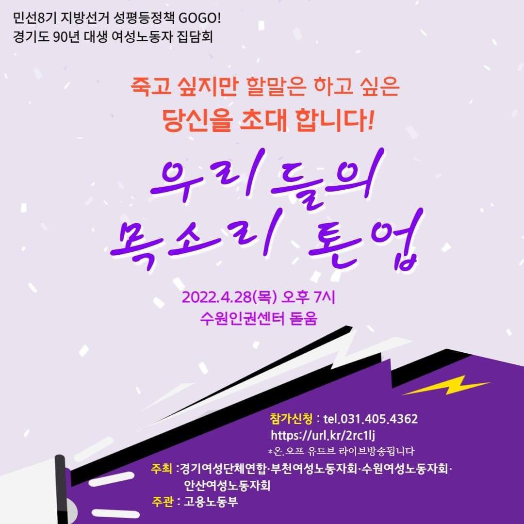 💜 주최 | 경기여성단체연합, 부천여성노동자회,수원여성노동자회, 안산여성노동자회