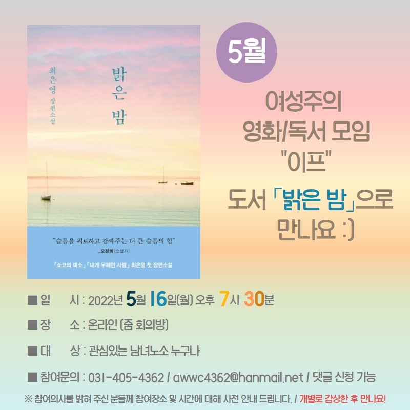 5월 이프는 도서 「밝은 밤」으로 나눔 합니다.