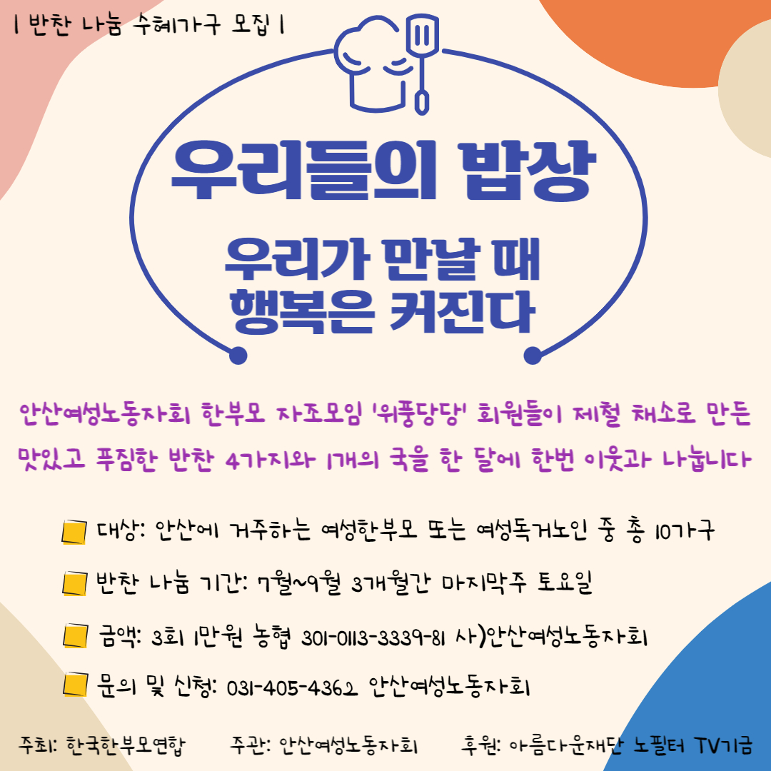 안산여성노동자회 한부모 자조모임 '위풍당당'에서 알려드립니다