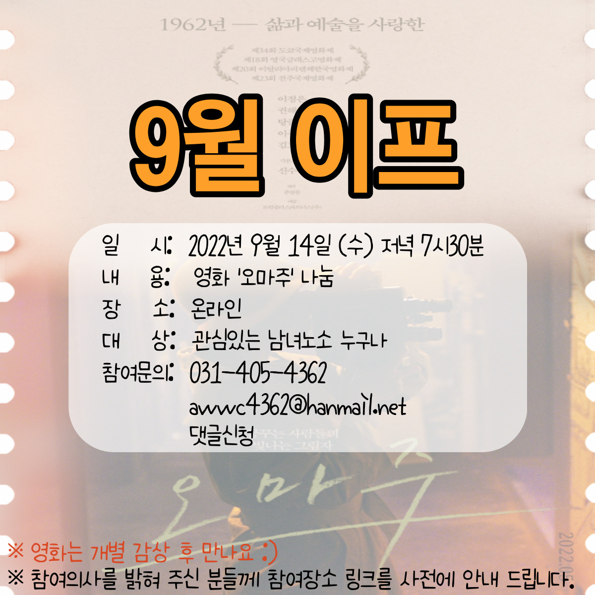 ■일정: 2022년 9월 14일 수요일 저녁 7시30분