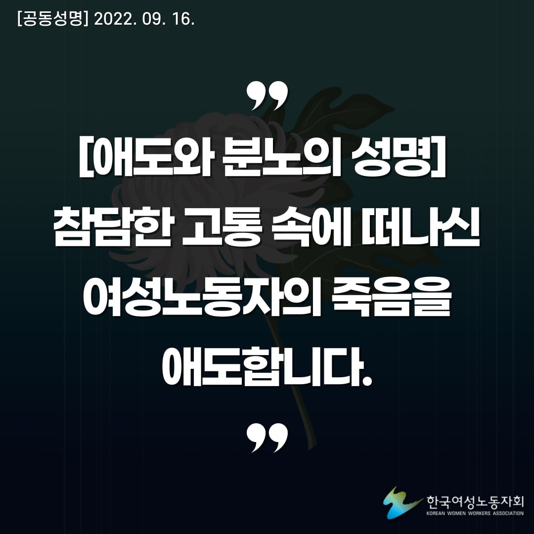 참담한 고통 속에 떠나신 여성노동자의 죽음을 애도합니다.
