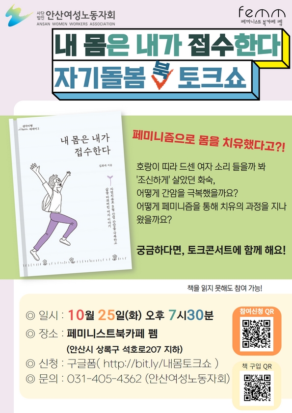 화숙의 이야기가 궁금하다면, '내 몸은 내가 접수한다! 자기돌봄 북토크쇼'에 함께 해요!