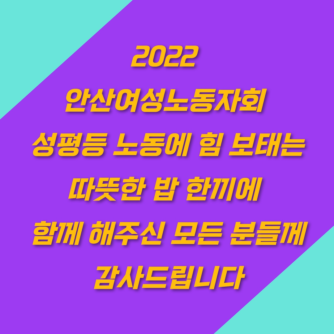 | 「성평등 노동에 힘 보태는 따뜻한 밥 한끼」, 2022 안산여성노동자회 후원밥집 (1) | 2022.11.11 |