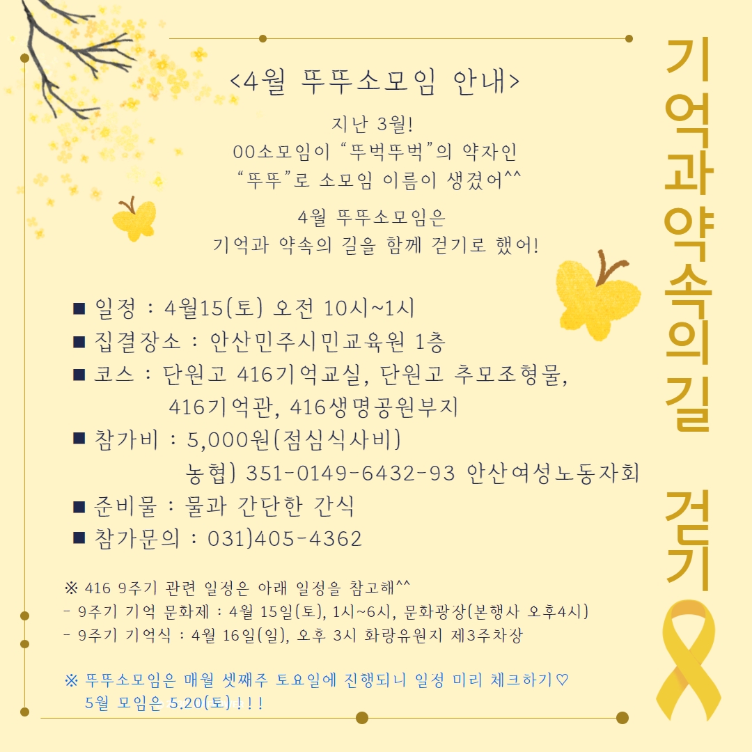 ※ 416 9주기 관련 일정에 참여하고 싶은 분은 아래 일정을 참고하세요 ^^
