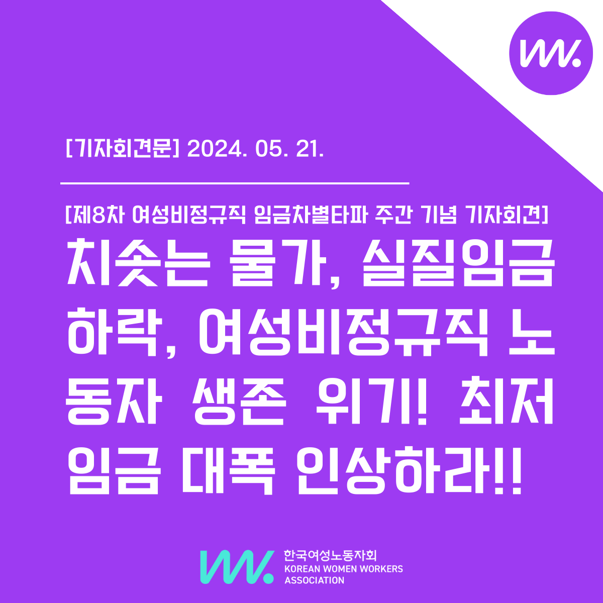 | [제8차 여성비정규직 임금차별타파 주간]치솟는 물가, 실질임금 하락, 여성비정규직 노동자 생존위기!최저임금 대폭 인상하라! (0) | 2024.05.23 |