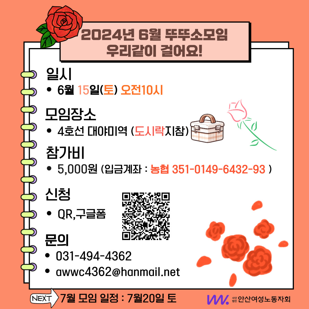 6월은 장미의 계절! 다 같이 걸으며 6월의 싱그러움과 상쾌함 그리고 같이 걷는 즐거움을 느껴보시면 어떨까요?