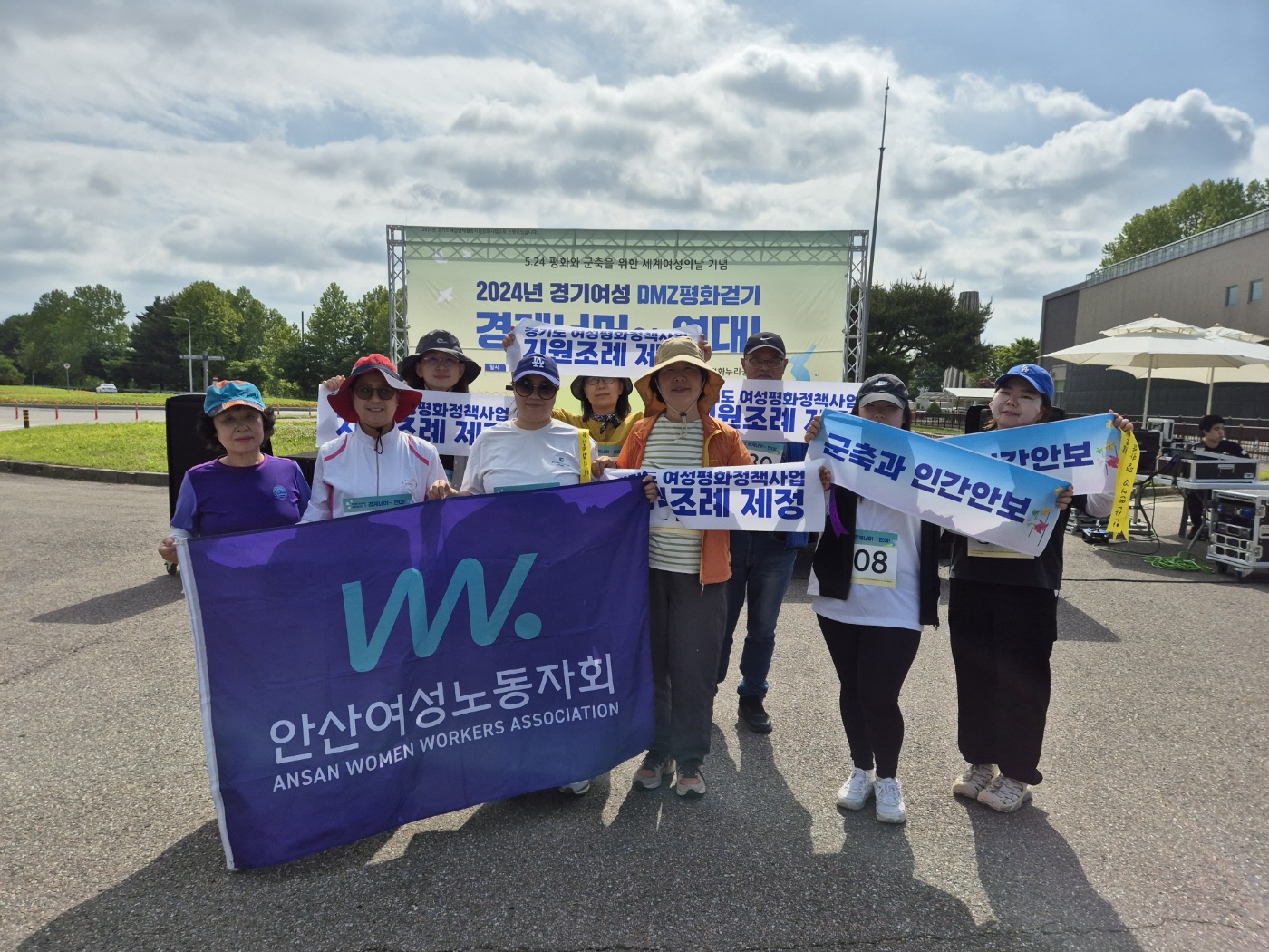 5월 18일 토요일 5.24 평화와 군축을 위한 세계여성의 날 기념 2024년 경기여성 DMG 평화걷기 경계너머∼ 연대! 행사에 참여하였다. 안산여성노동자회 뚜뚜 걷기 회원들과 후원회원들이 참여하였다.