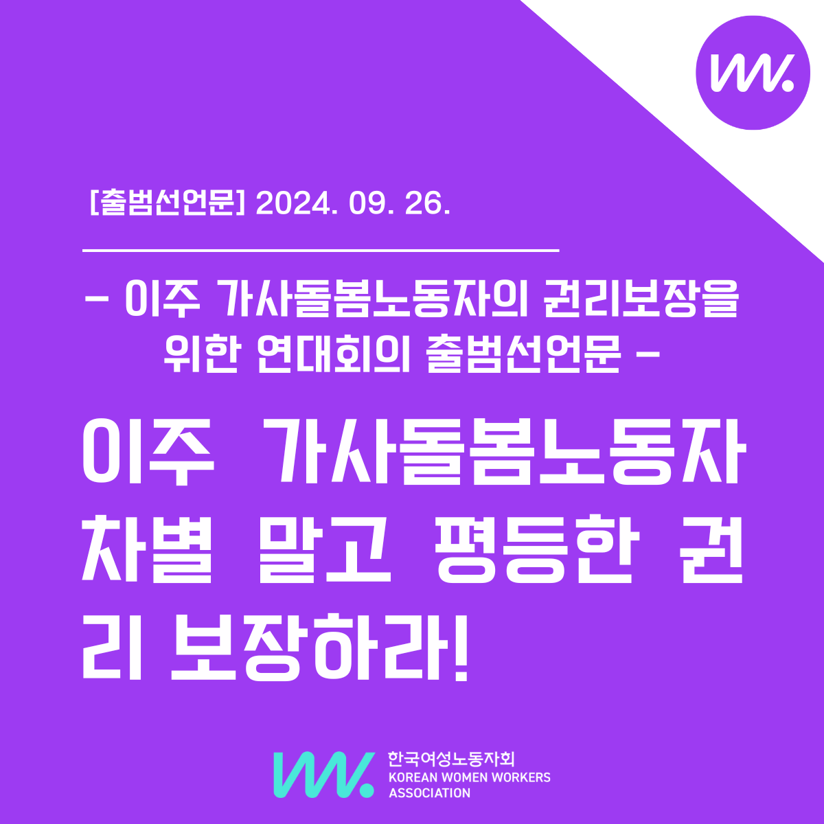 이주 가사돌봄노동자의 권리보장을 위한 연대회의 출범선언문