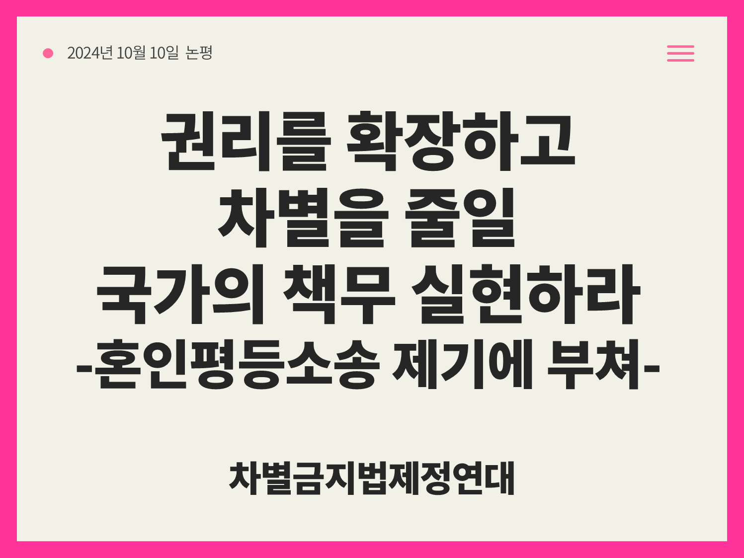 [공동논평] 권리를 확장하고 차별을 줄일 국가의 책무 실현하라