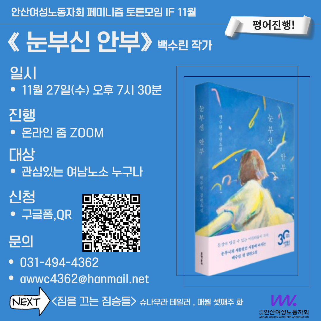 이번 11월의 책은 백수린 작가의 <눈부신 안부> 입니다.