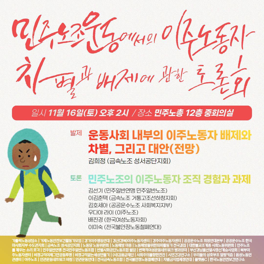[토론회] 민주노조운동에서의 이주노동자 차별과 배제에 관한 토론회