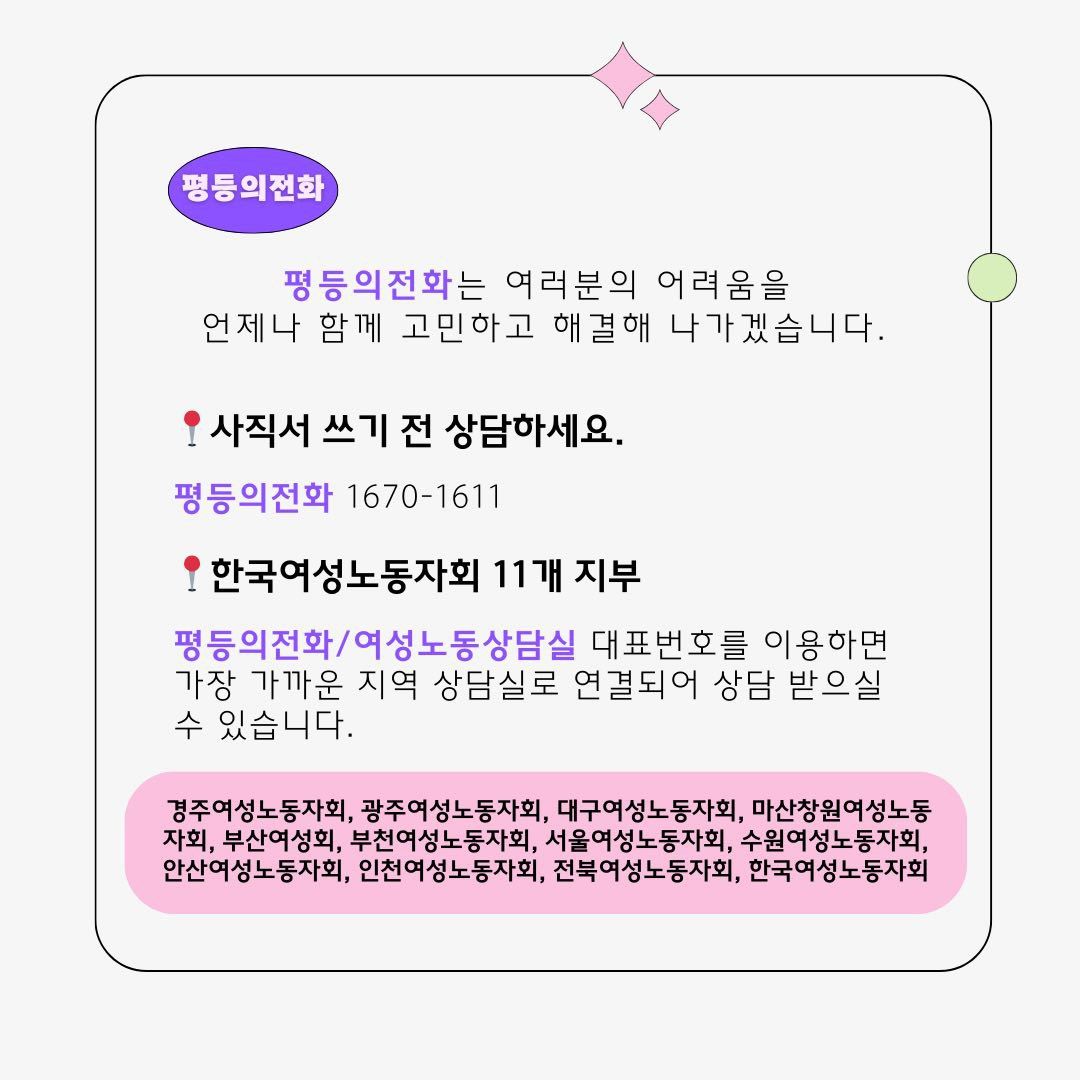 📍 사직서 쓰기 전 상담하세요. 평등의전화 1670-1611