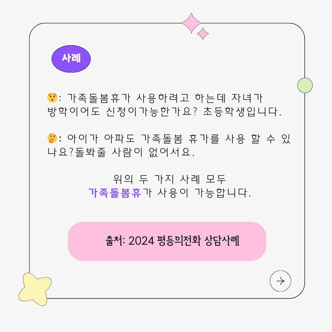 😯 가족돌봄휴가 사용하려고 하는데 자녀가 방학이어도 신청이 가능한가요? 초등학생입니다.