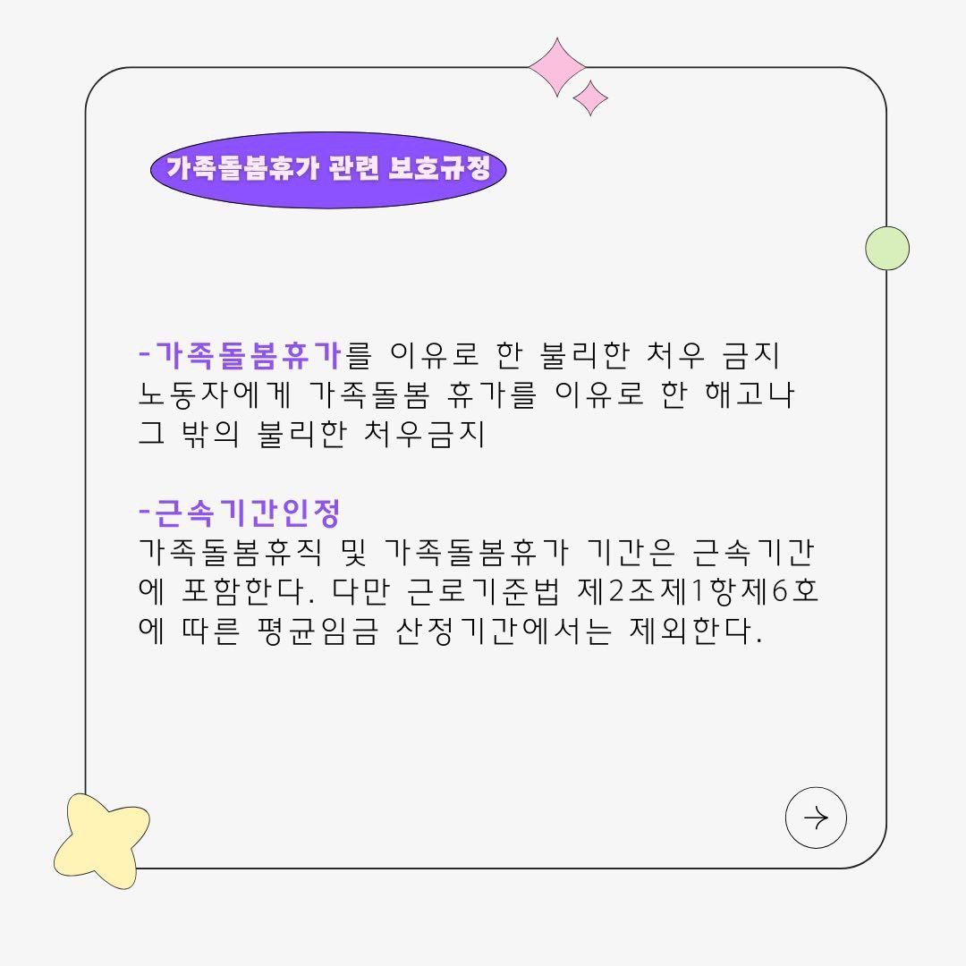 가족돌봄휴가를 이유로 한 불리한 처우 금지. 노동자에게 가족돌봄 휴가를 이유로 한 해고나 그 밖에 불리한 처우 금지