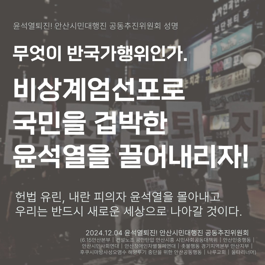 <윤석열퇴진! 안산시민대행진 공동추진위원회 성명>
