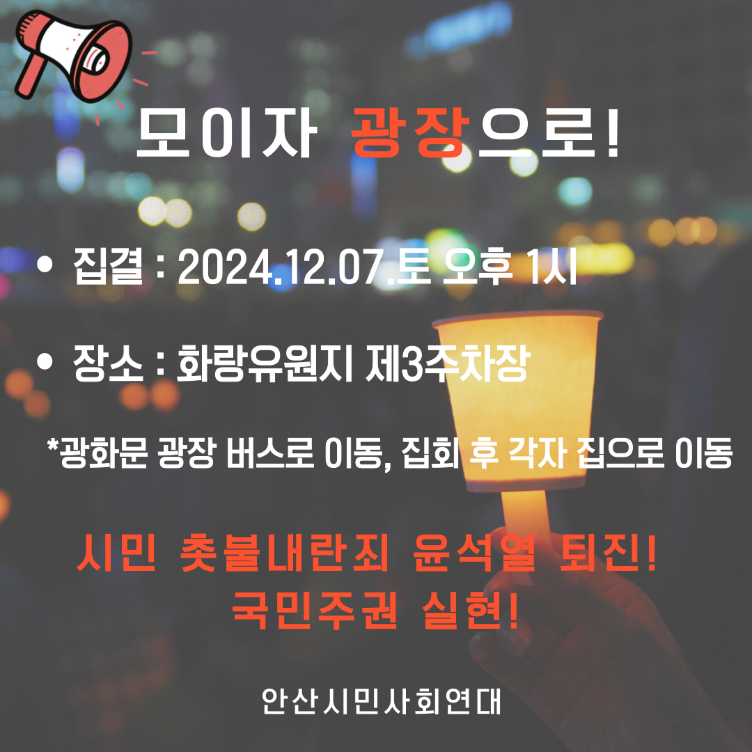 | 윤석열 퇴진 총궐기반차별 운동으로 함께 합시다🔥 (2) | 2024.12.06 |