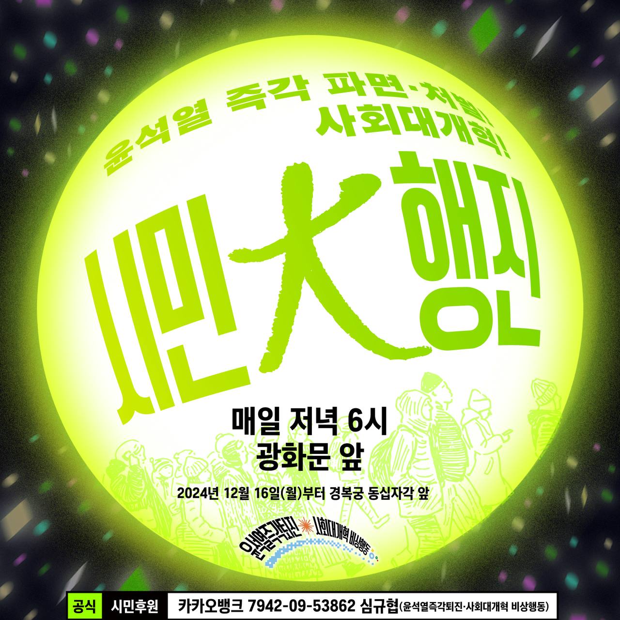 📌공식 시민후원 : 카카오뱅크 7942-09-53862 심규협(윤석열즉각퇴진•사회대개혁 비상행동)