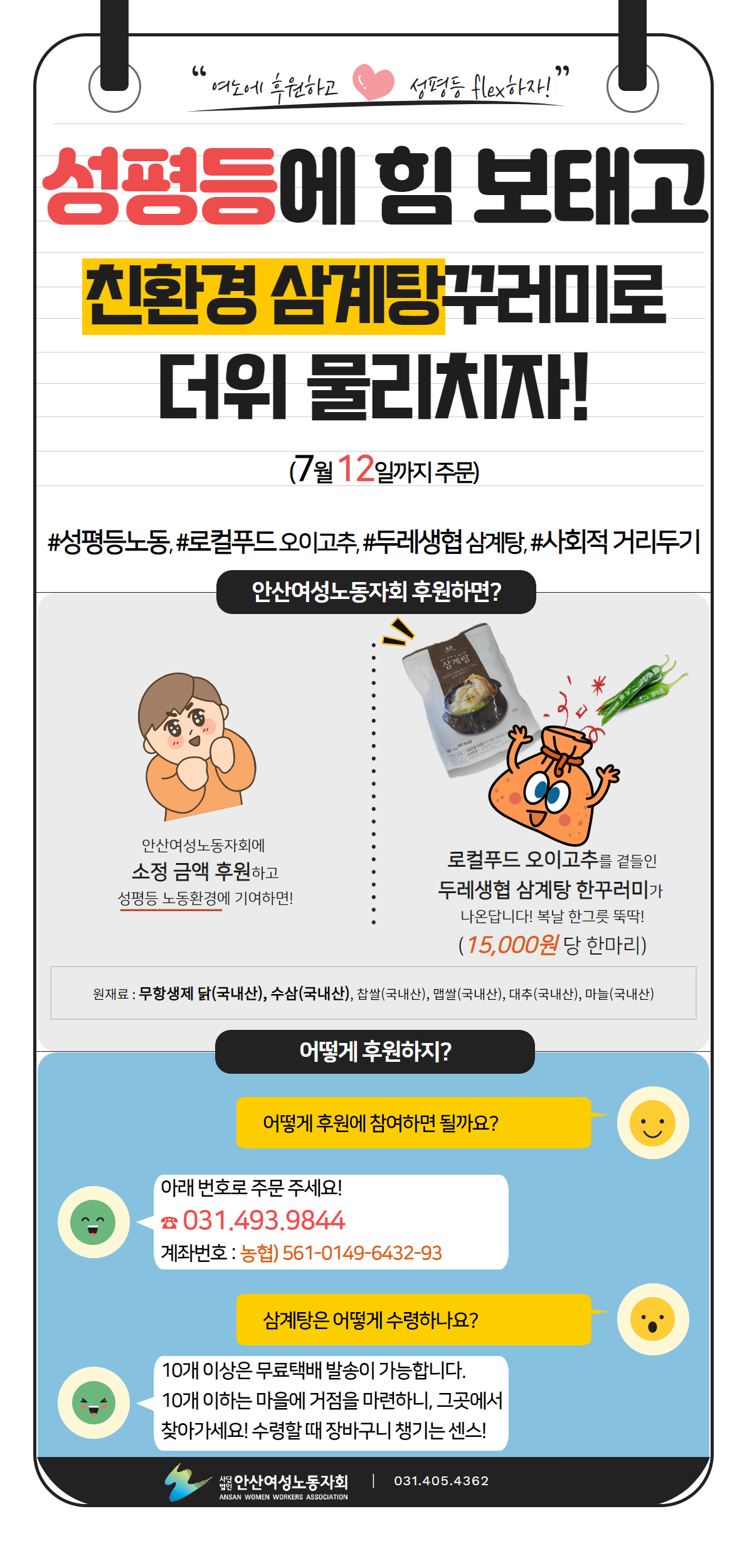 성평등에 힘 보태면 친환경 삼계탕도 먹고, 복날 무더위도 날리고, 로컬푸드 생산음식 소비하고!