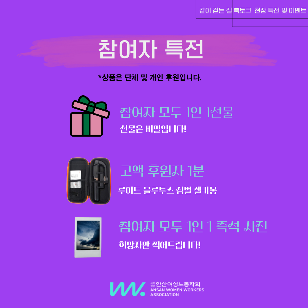 참여자 특전 : 1인 1 🎁선물 증정 및 즉석사진 찍어드립니다! (희망자만)