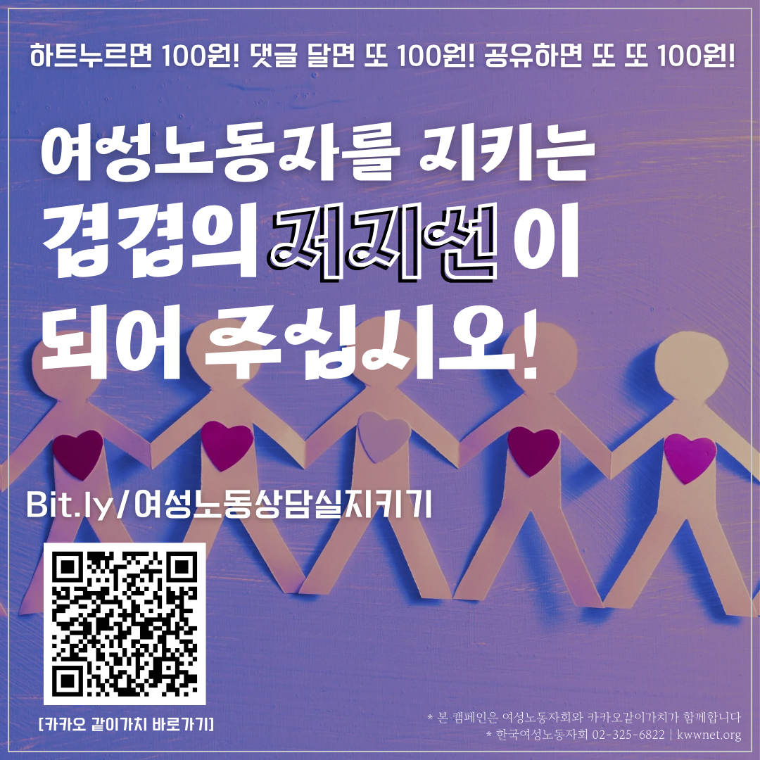 💜 여성노동상담실 좋아요, 공유, 댓글달기로 함께 지키기 : https://bit.ly/여성노동상담실지키기