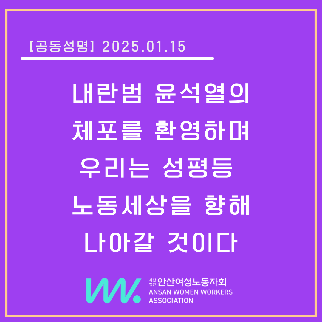 오늘 우리는 대한민국 민주주의와 성평등 노동을 향한 또 한 걸음을 내딛었다. 내란범 윤석열의 체포는 헌정 질서를 유린하고 민주주의를 위협한 권력에 대한 시민들의 심판이자 승리이며, 거리로 나선 수많은 시민들이 만든 결과다.