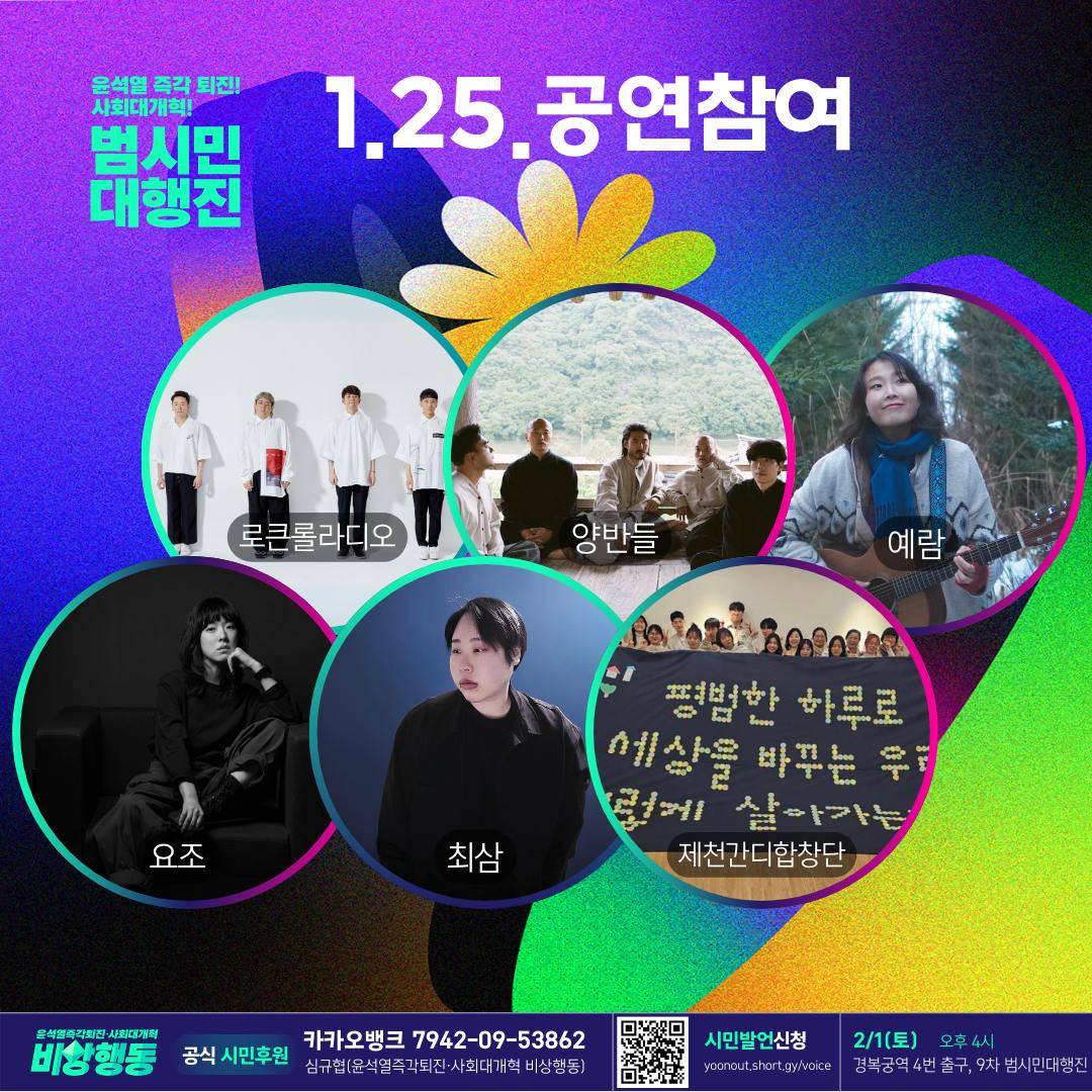 | [시민발언신청]🎤 윤석열 즉각퇴진·사회대개혁 비상행동(2025) (1) | 2025.01.22 |
