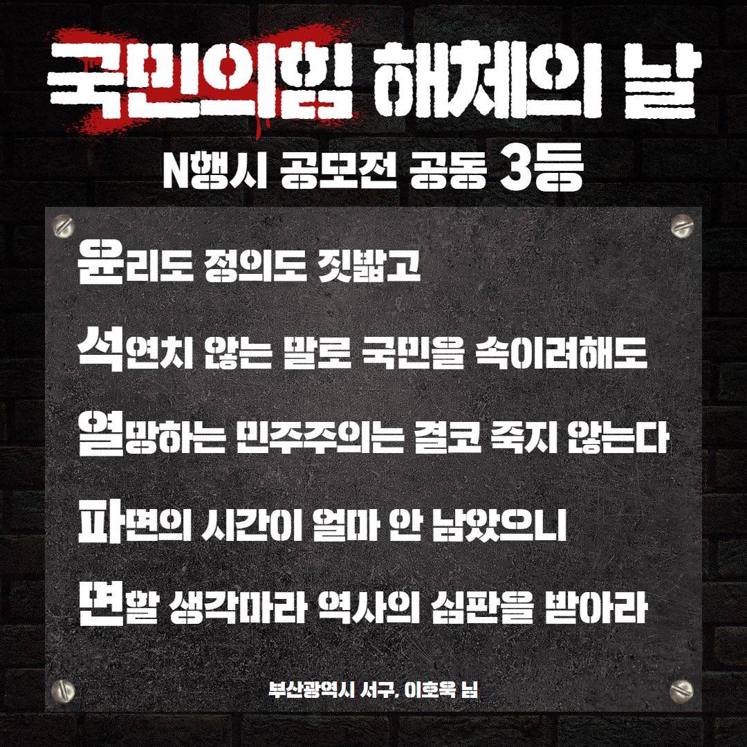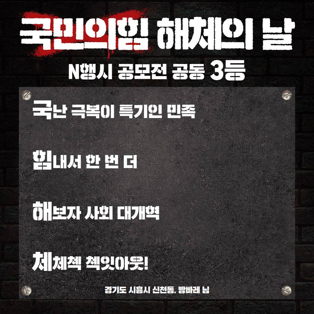 🔥국민의힘 해체의 날 N행시 공모전 수상작 10개 작품 공개합니다!! 전국적으로 82명이 공모전에 참가해주셨고, 윤석열과 국민의힘을 향한 분노가 가득 담긴 기발한 작품들을 많이 보내주셨습니다. 참가해주신 분들 모두 감사합니다~!!