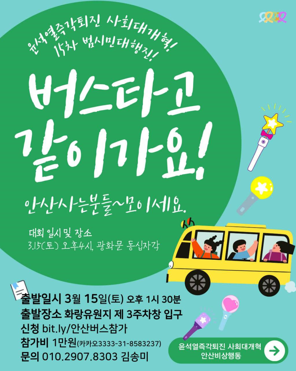 📍 15차 범시민대행진 버스타고 같이 갈 사람은 ↓↓↓아래 링크를 신청해주세요