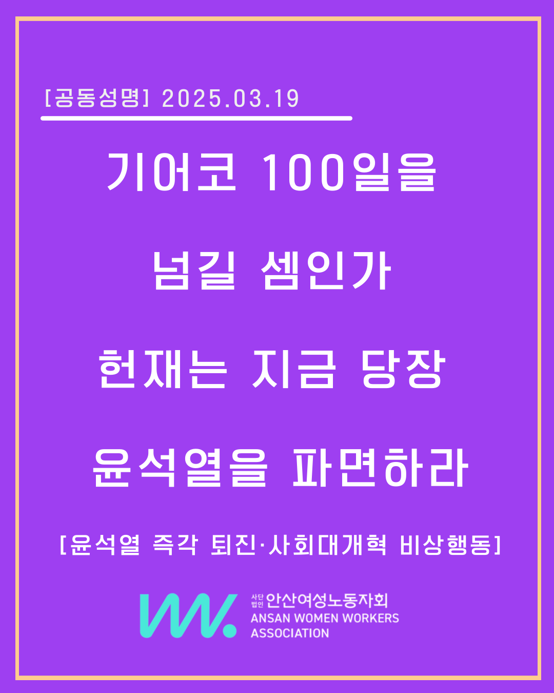 | [공동성명] 터무니없는 윤석열 구속취소 결정, 검찰은 즉시항고하라 (1) | 2025.03.07 |