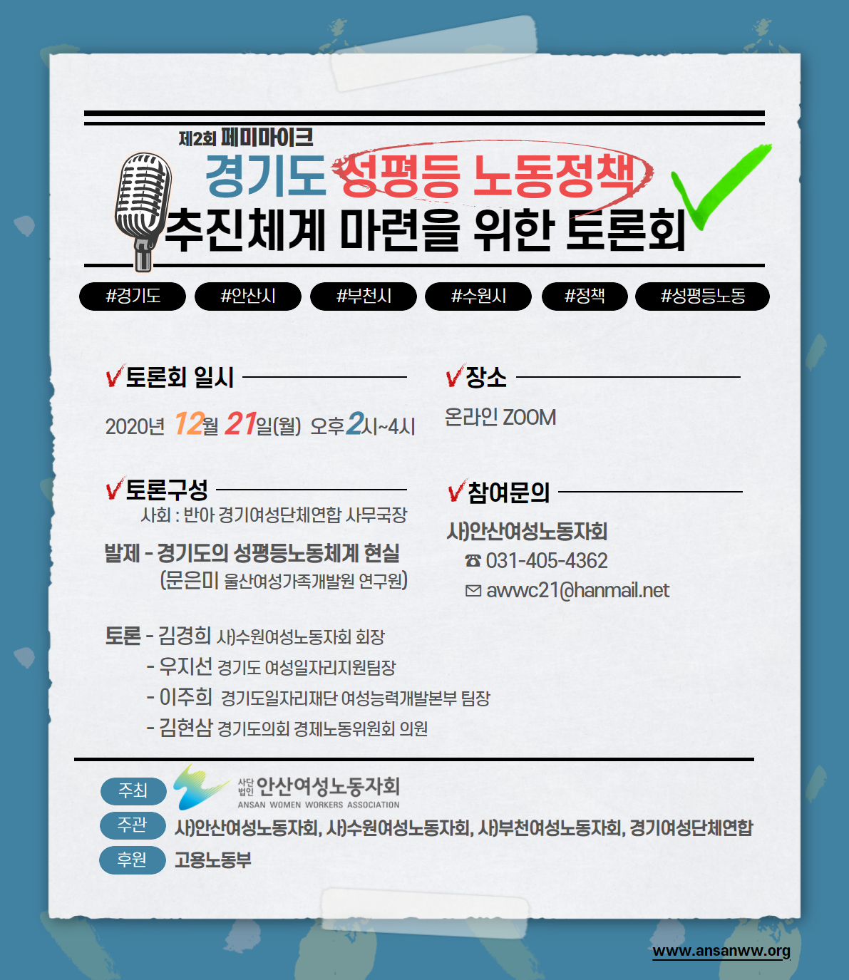 페미마이크, 경기도 성평등 노동정책 추진체계 마련을 위한 토론회에 초대합니다.