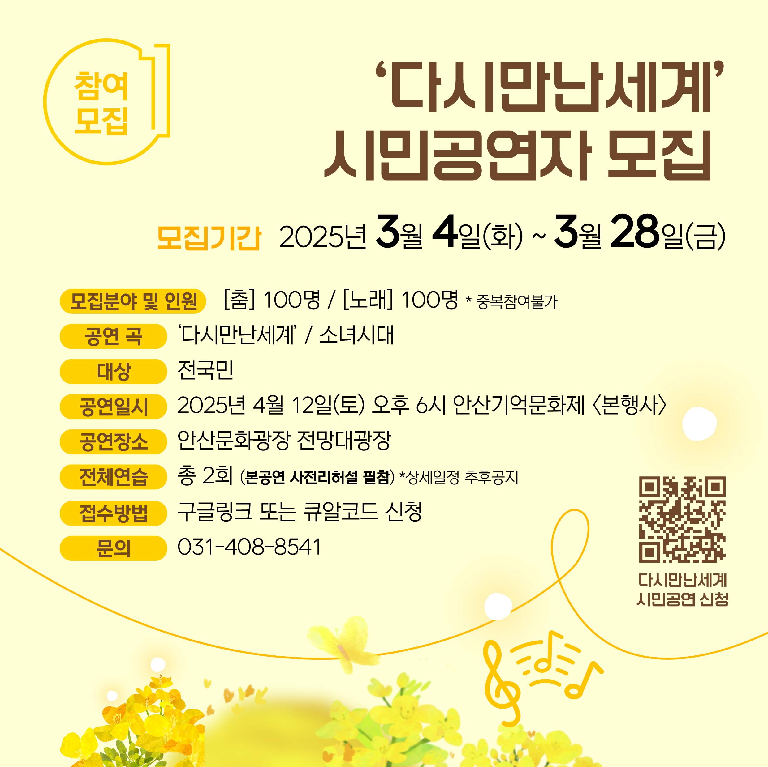 - '다시만난세계' 시민공연: https://forms.gle/vLr9hWn4cDKr1Tav7