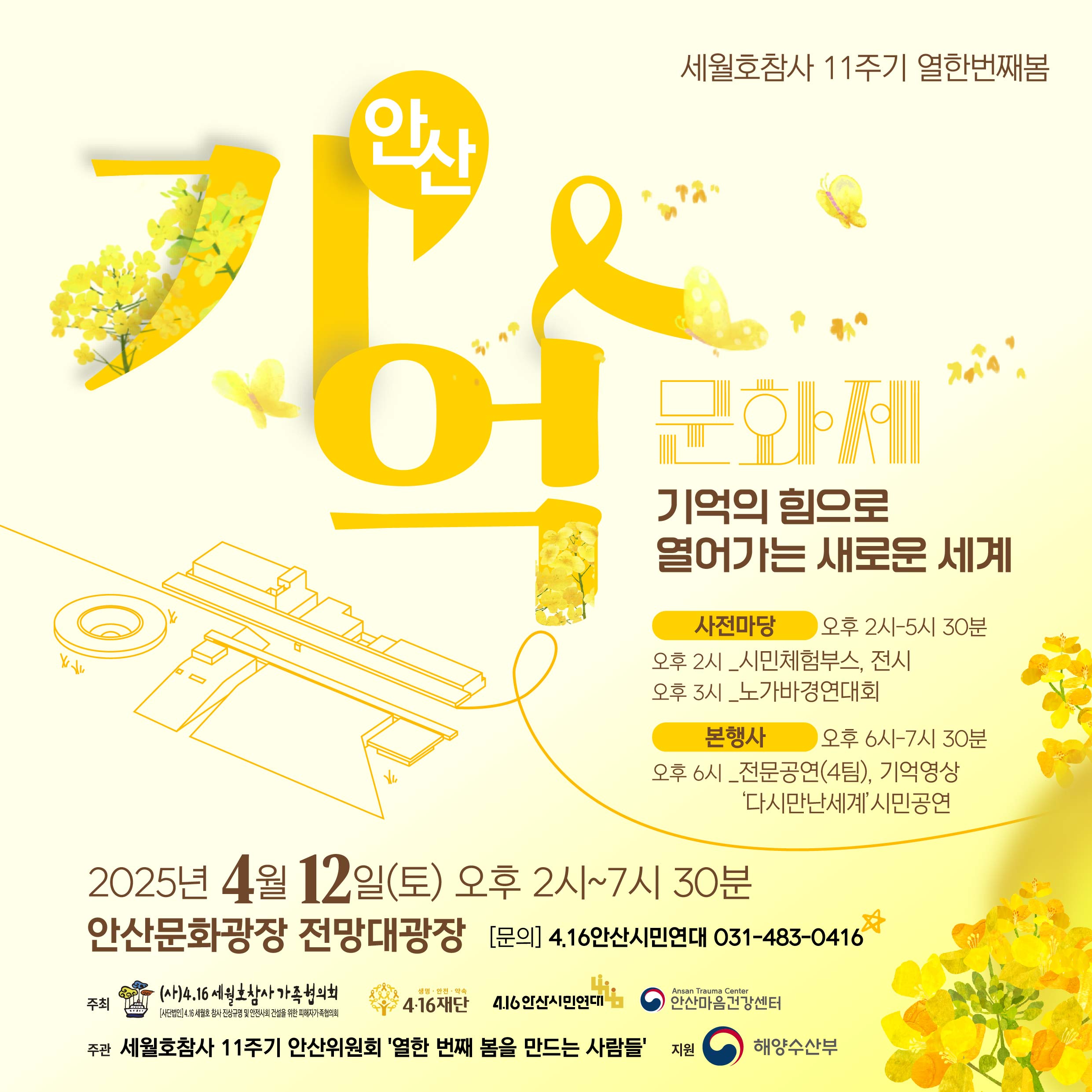 4월 12일(토) 안산문화광장에서 펼쳐지는 ‘기억의 힘으로 열어가는 새로운 세계 <안산기억문화제>’ 함께 해요!!
