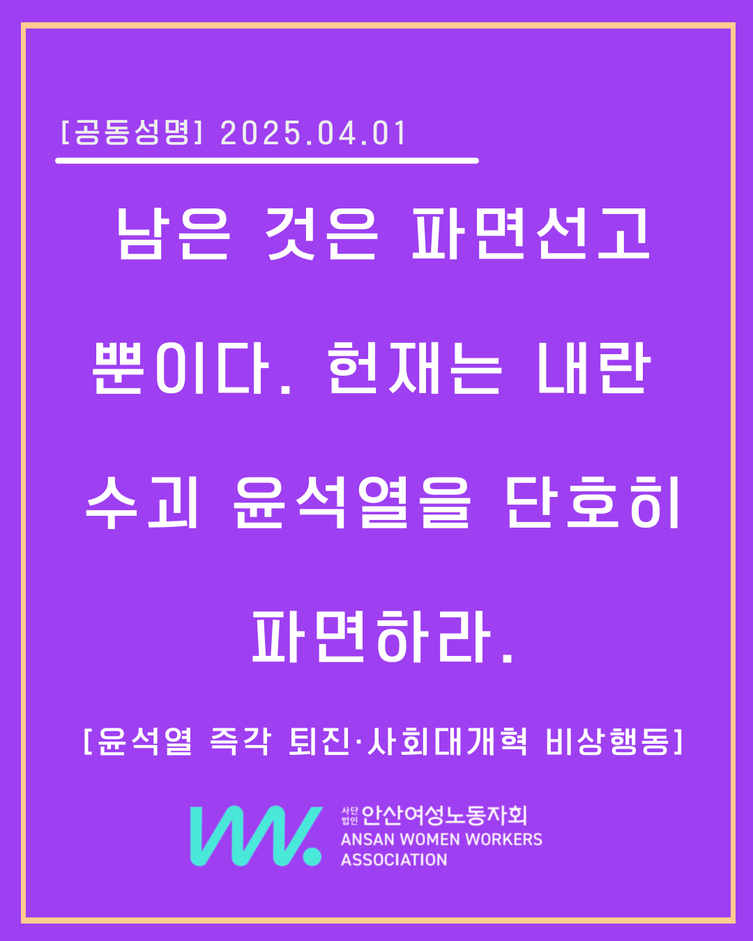 주권자 시민들은 윤석열의 계엄과 내란을 분명히 목격했고, 이미 윤석열을 파면했다. 이제 남은 것은 헌재의 파면선고 뿐이다. 헌법재판소는 내란수괴 윤석열을 8: 0 만장일치 판결로 파면하라. 이 땅의 민주주의를 위해서라도, 그리고 다시는 내란이 반복되지 않도록 윤석열을 반드시 파면하고 단죄해야 한다.