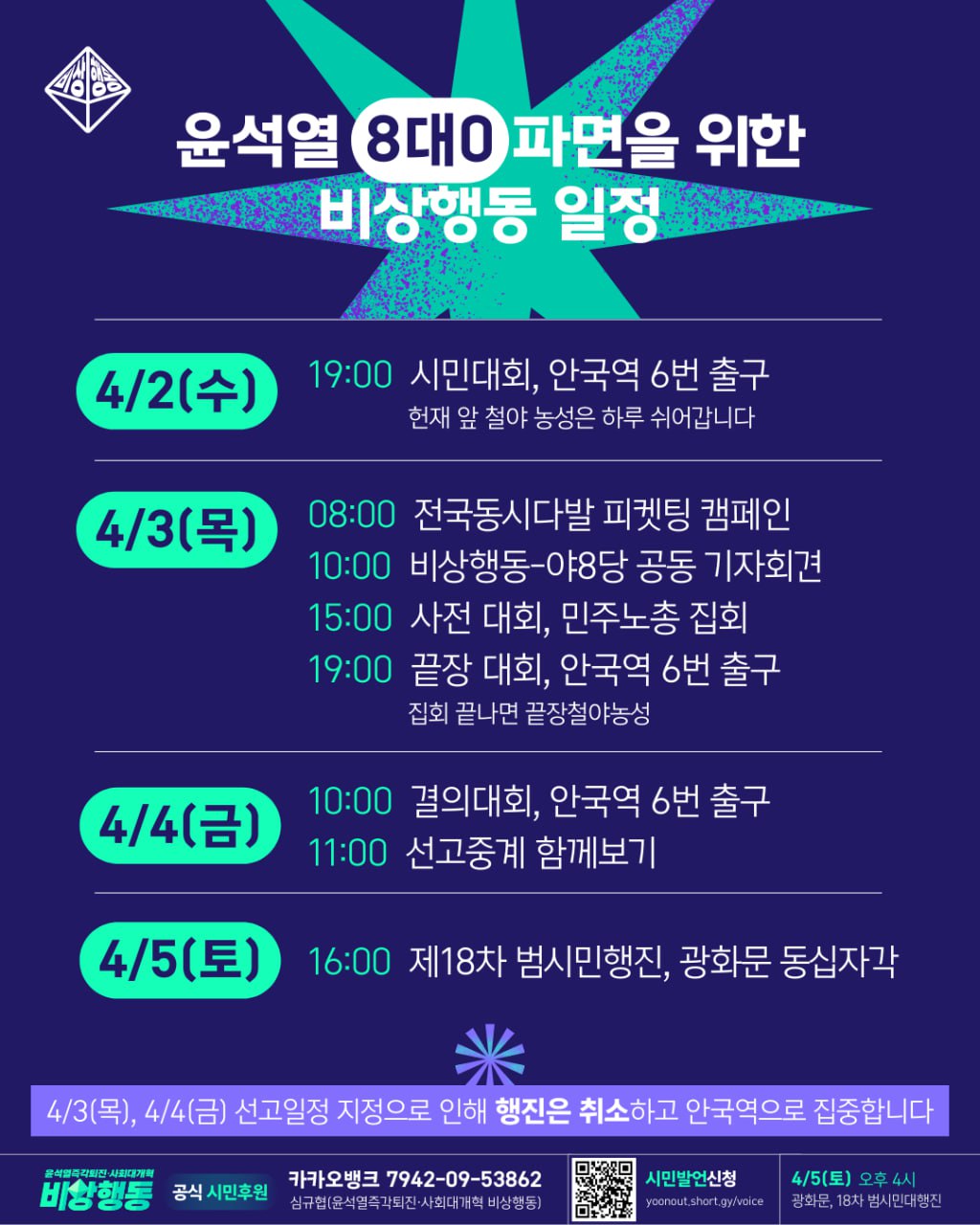 윤석열 8대0 파면을 위한 비상행동 일정