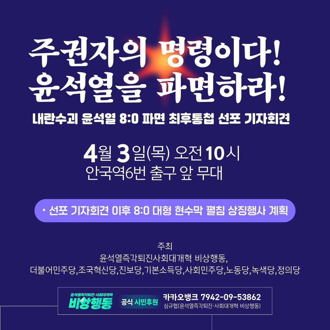 | 윤석열 8대0 파면을 위한 비상행동 일정 (0) | 2025.04.02 |