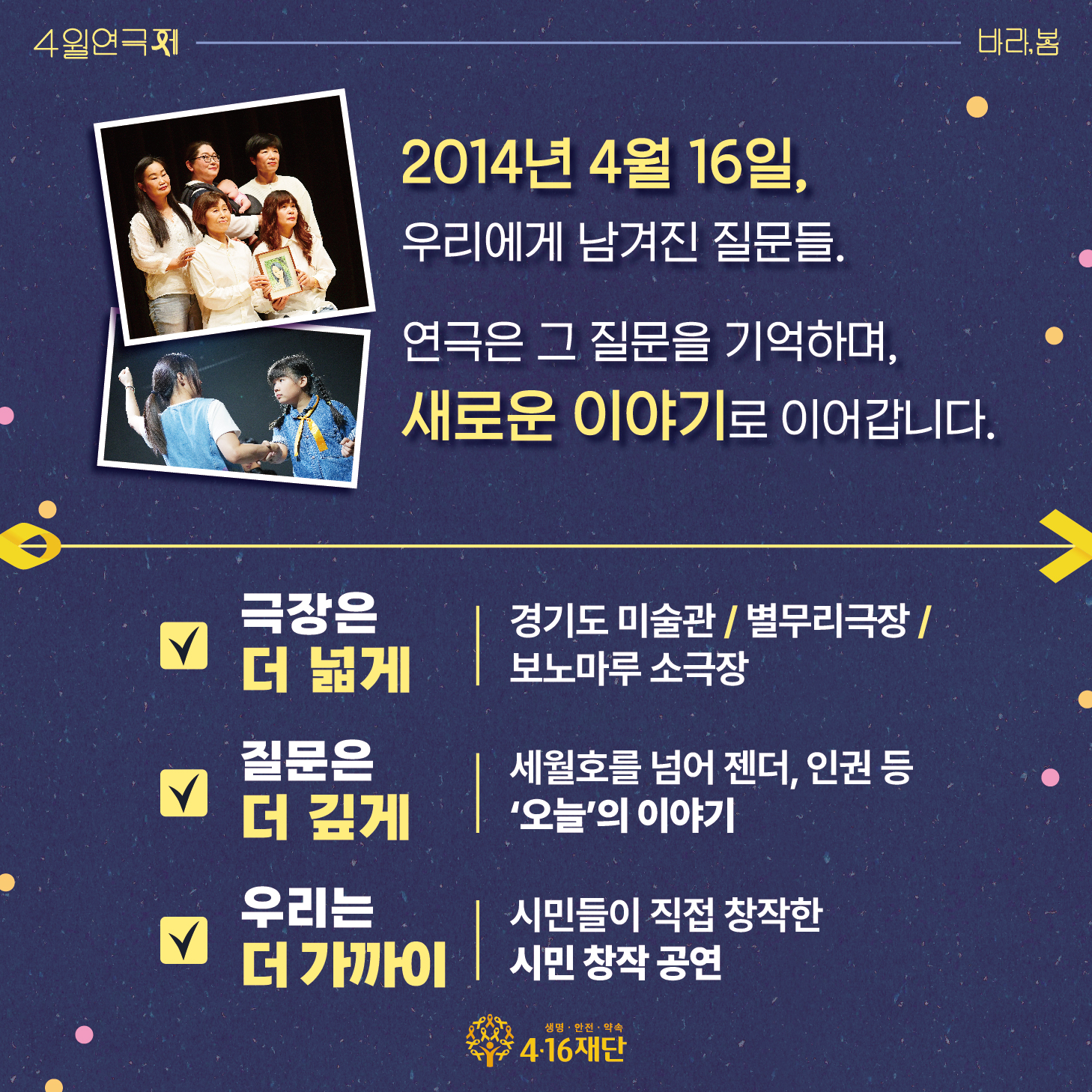 세월호를 넘어 젠더, 인권 등 ‘오늘’ 우리의 이야기로 더 깊고 다양한 질문을 던집니다.