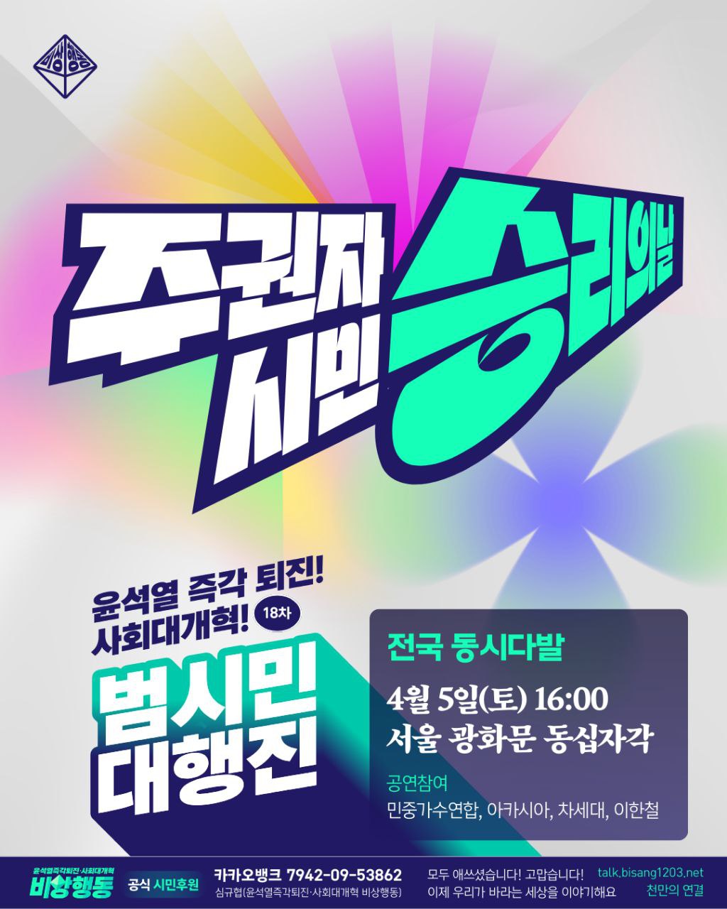 📌공식 시민후원 : 카카오뱅크 7942-09-53862 심규협(윤석열즉각퇴진•사회대개혁 비상행동)
