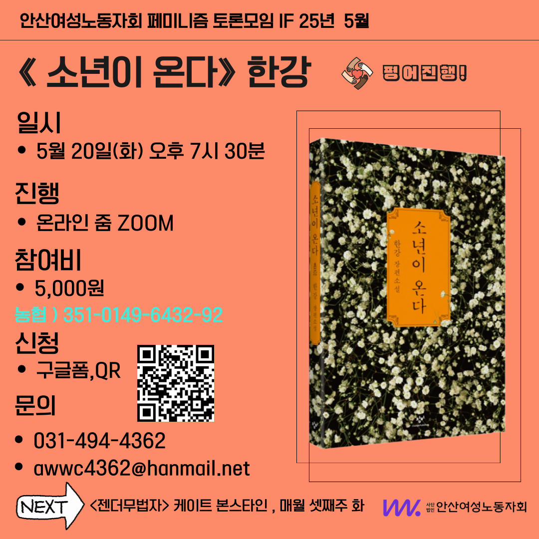 이번에 함께 읽을 책은 한강의 『소년이온다』 입니다.
