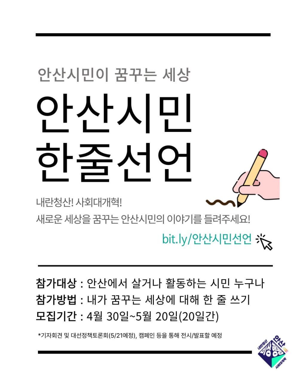 *이후 온라인, 기자회견 및 대선정책토론회, 캠페인 등을 통해 안산시민선언을 전시/발표할 예정