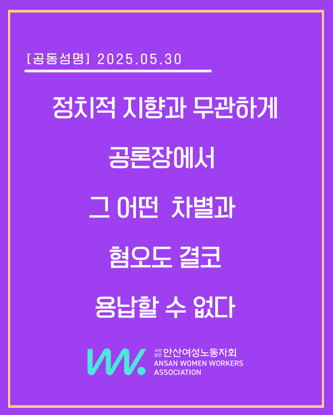 [공동성명] 정치적 지향과 무관하게 공론장에서 그 어떤 차별과 혐오도 결코 용납할 수 없다