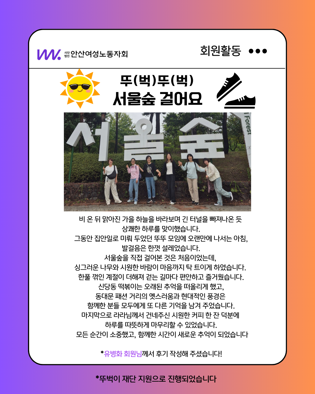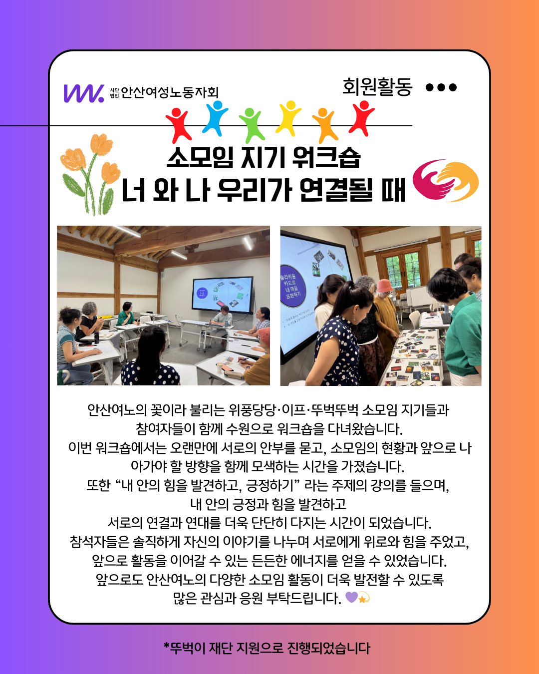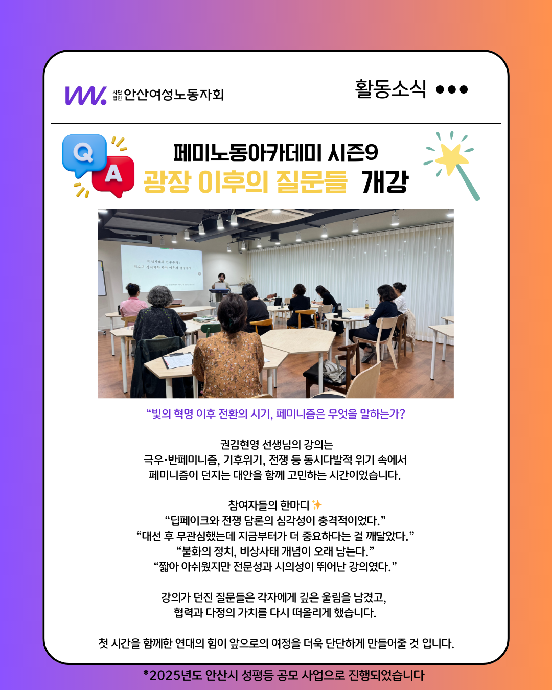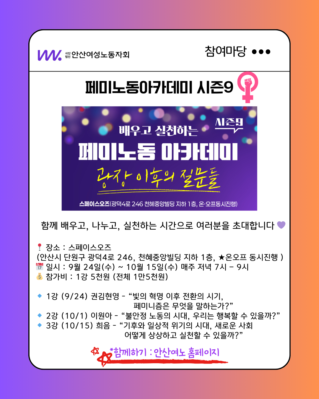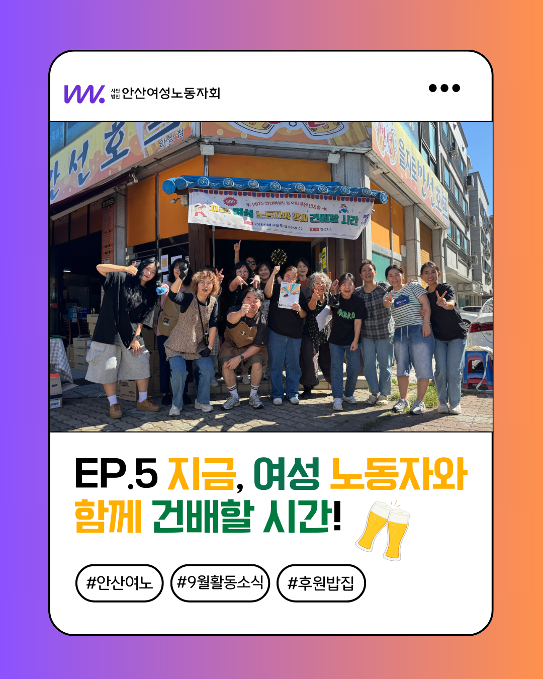 9월의 안산여노는 따뜻한 밥상과 배움, 그리고 단단한 연대로 가득했습니다!