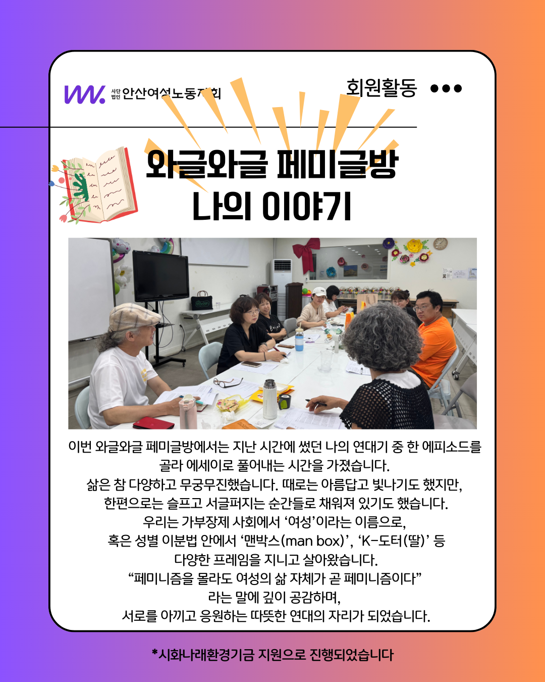 9월의 안산여노는 따뜻한 밥상과 배움, 그리고 단단한 연대로 가득했습니다!