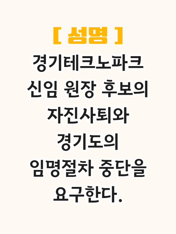 거듭 밝히거니와 경기도지사는 중소벤처기업부 장관의 승인 여부와 상관없이 임명절차 과정을 중단하고 성평등한 도정실현을 하는데 함께 할 새로운 인물을 발굴해야 할 것이다.