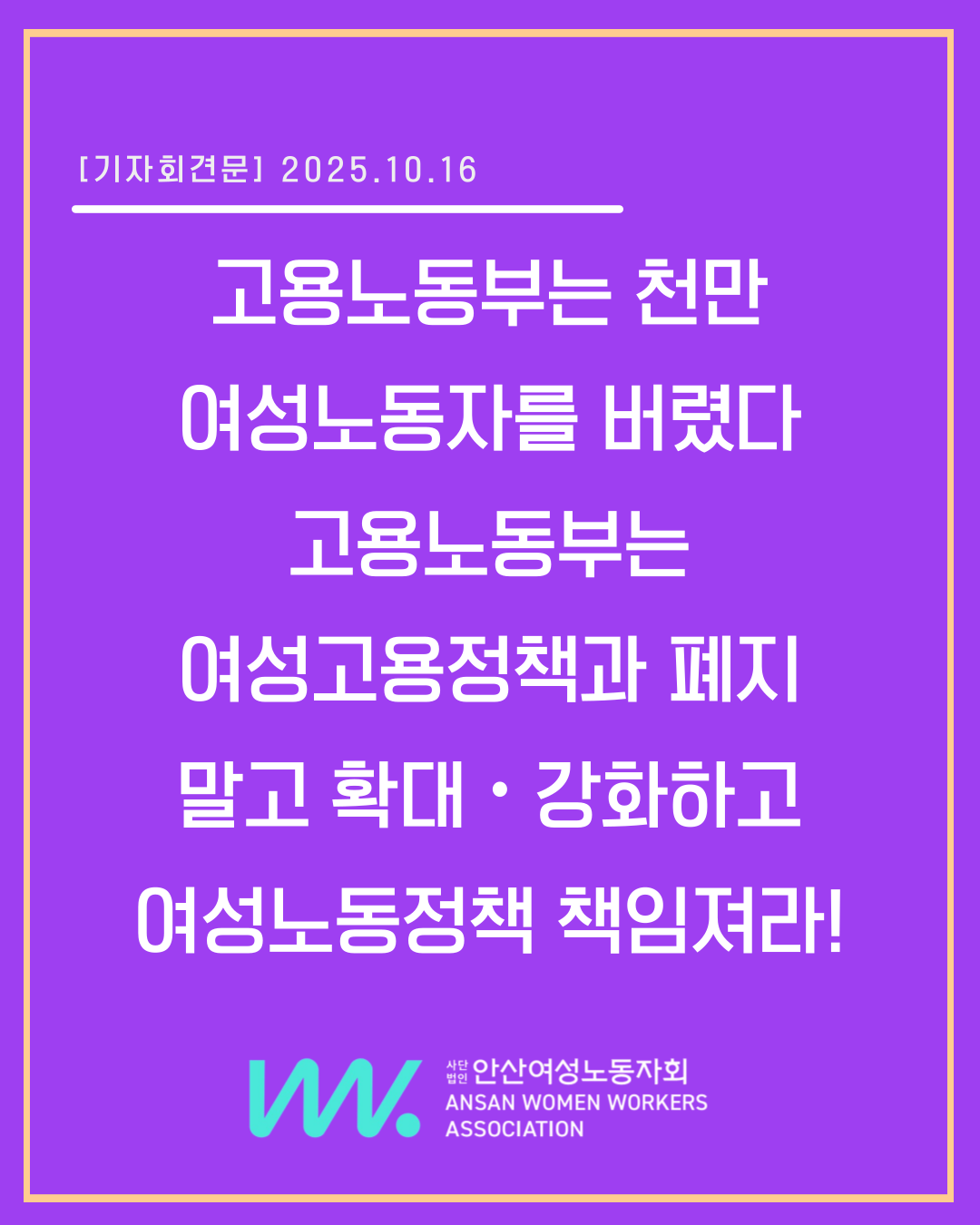 | [기자회견문] 반토막 복원, 형식적 복원으로는 성평등 없다.민간 고용평등상담실 확대를 요구한다! (1) | 2025.10.13 |