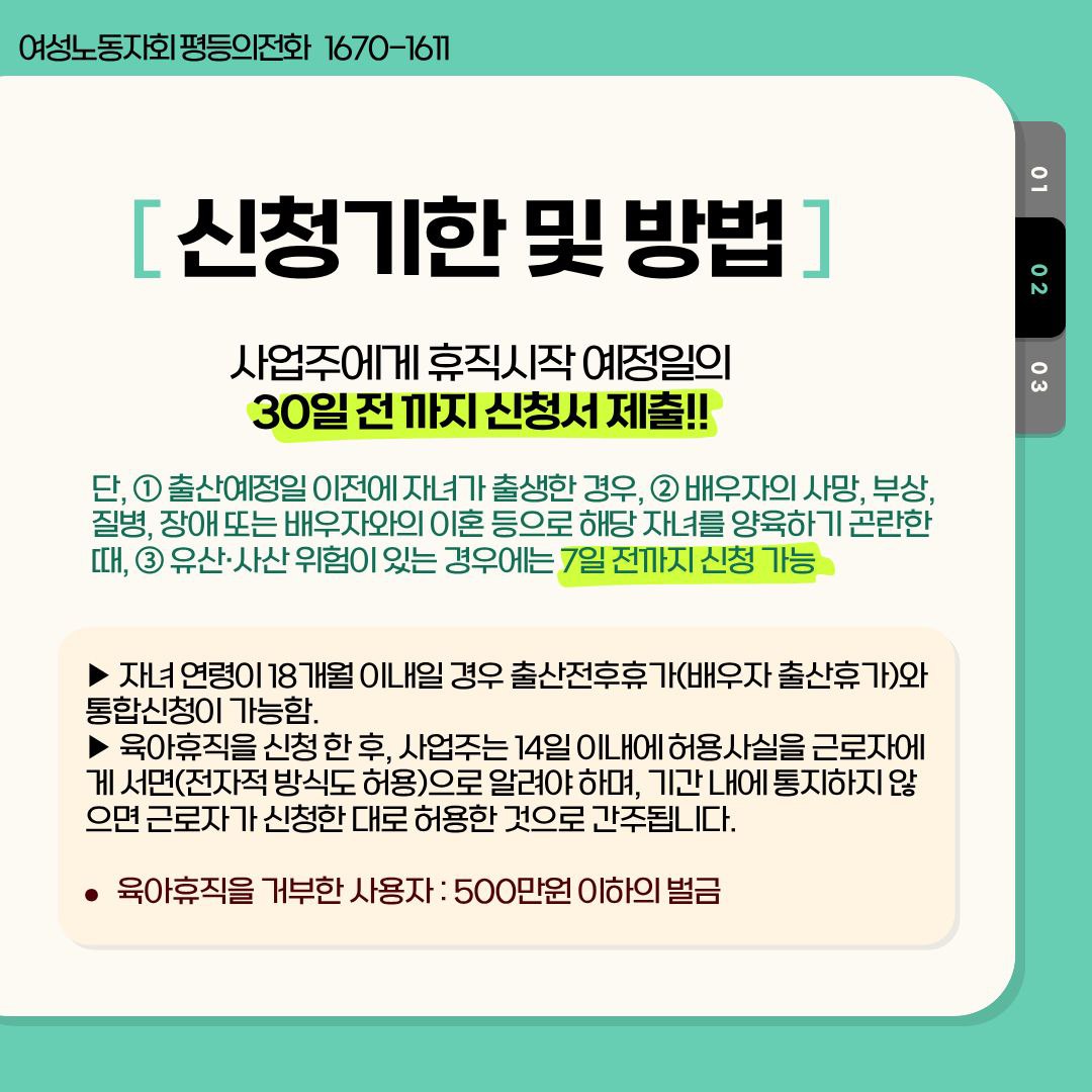 사업주에게 휴직시작 예정일의 30일 전 까지 신청서 제출!!