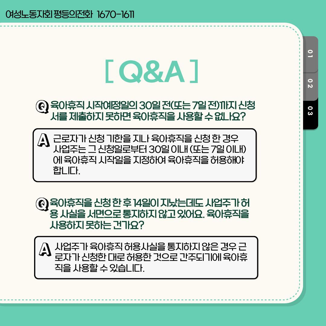 A. 사업주가 육아휴직 허용사실을 통지하지 않은 경우 근로자가 신청한 대로 허용한 것으로 간주되기에 육아휴직을 사용할 수 있습니다.