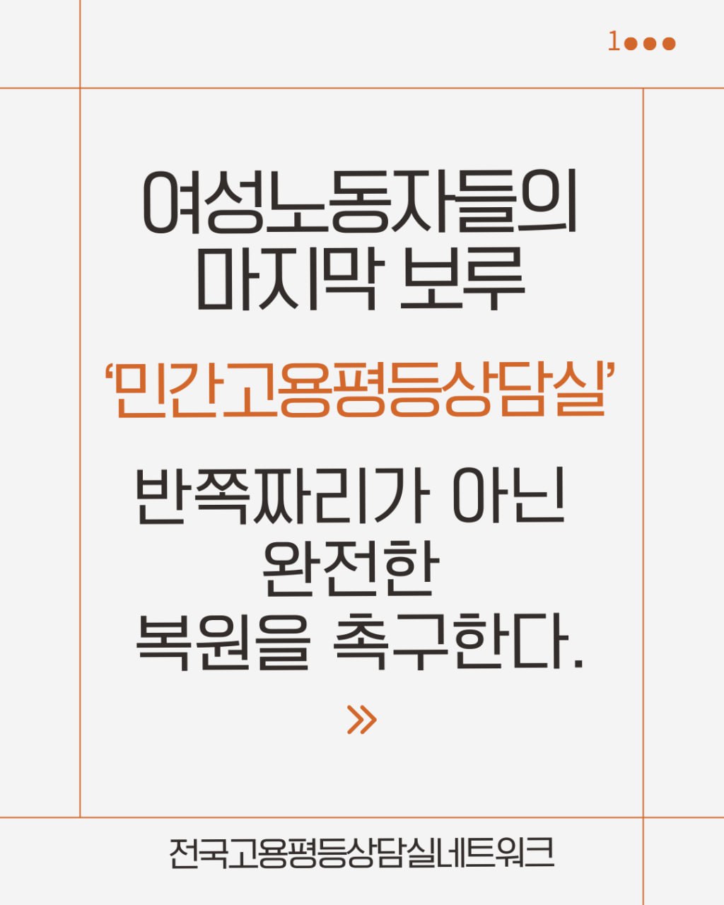 여성노동자들의 마지막 보루, ‘민간고용평등상담실’ 반쪽짜리가 아닌 완전한 복원을 촉구합니다.