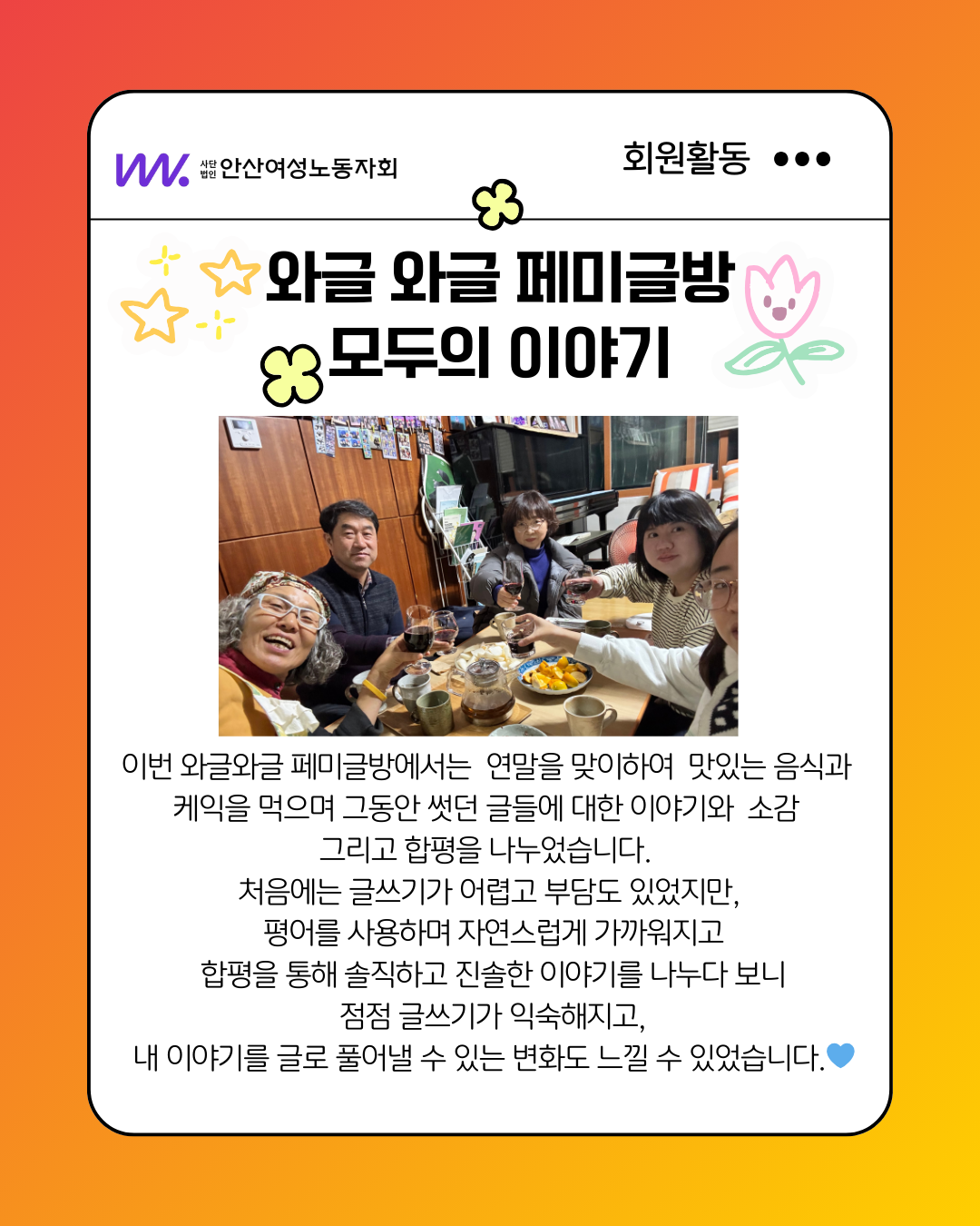 와글와글 페미글방에서는 한 해 동안의 글쓰기를 돌아보며 서로의 글을 나누고 격려했습니다.